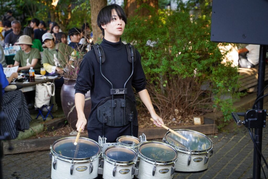 マーチングバンドで培ったグルーヴと技術力を活かし、ステージ演奏から音響オペレーションまで幅広く担当。