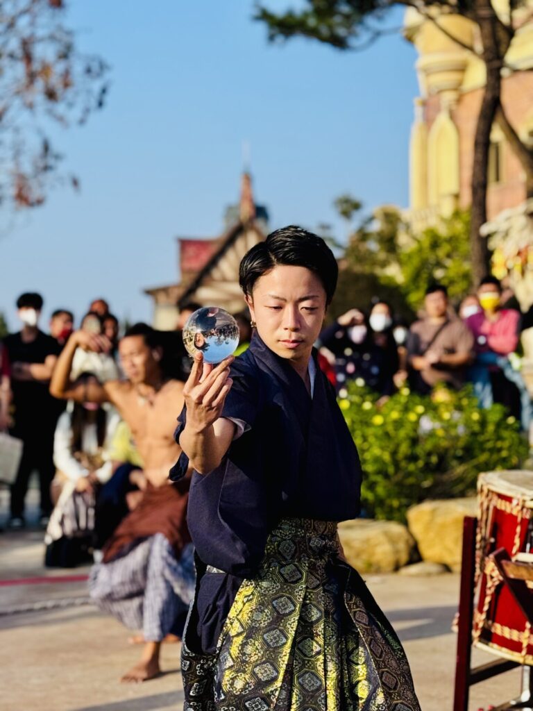 私は唯一の日本人メンバーとして、水晶玉を操るコンタクトジャグリングをはじめ、アクロバット、楽器を使った演出などを組み合わせたオリエンタルパフォーマンスを披露しました。