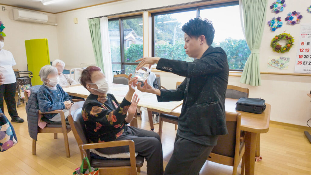 特に、水晶玉がふわりと浮かび上がった瞬間、利用者様の顔がパッと明るくなり、自然と拍手が起こったのがとても印象的でした。