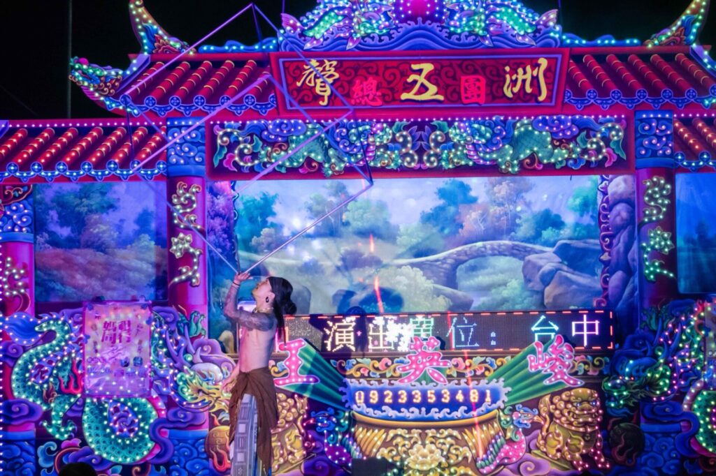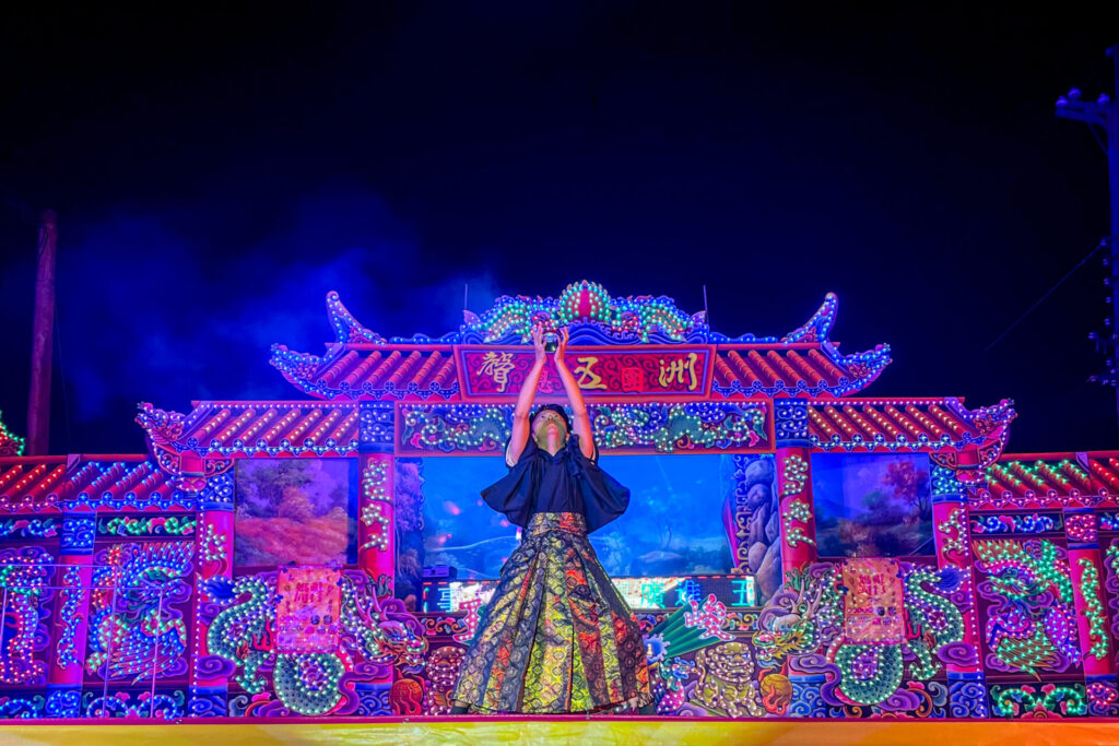 電子花車という台湾ならではの伝統的な舞台環境の中で、日本らしい美しさと幻想的な演出が見事に融合しており、来場者の注目を大きく集めていました。